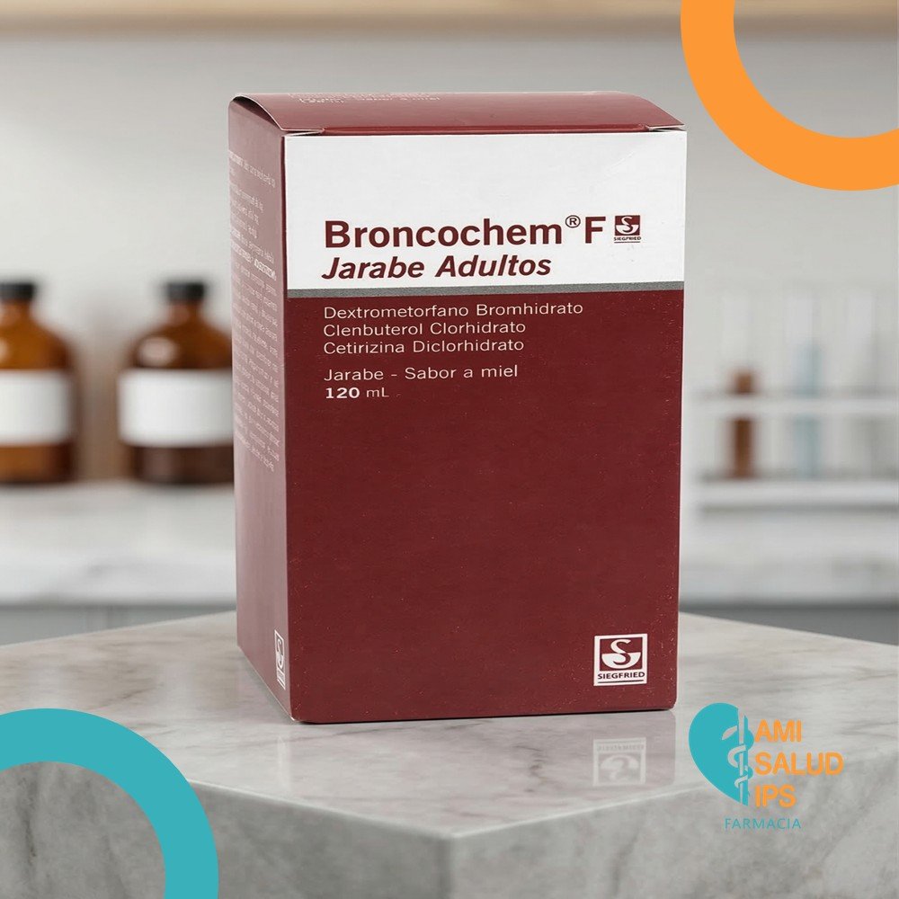 BRONCOCHEM F ADULTOS DEXTROMETORFANO 20MG, CETIRIZINA 1.8MG, CLEMBUTEROL 0.01 MG JARABE SABOR A MIEL FRASCO*120ML SIEGFIED