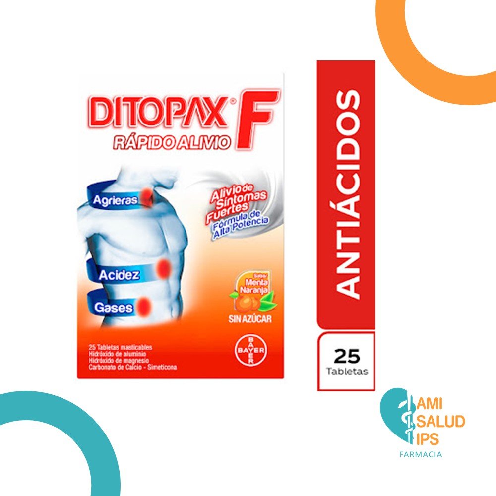 | TABLETA | CARBONATO DE CALCIO + HIDROXIDO DE ALUMINIO +HIDROXIDO DE MAGNESIO + SIMETICONA 410MG+470MG+328+25MG TABLETAS MASTICABLES DITOPAX F EUROFARMA |