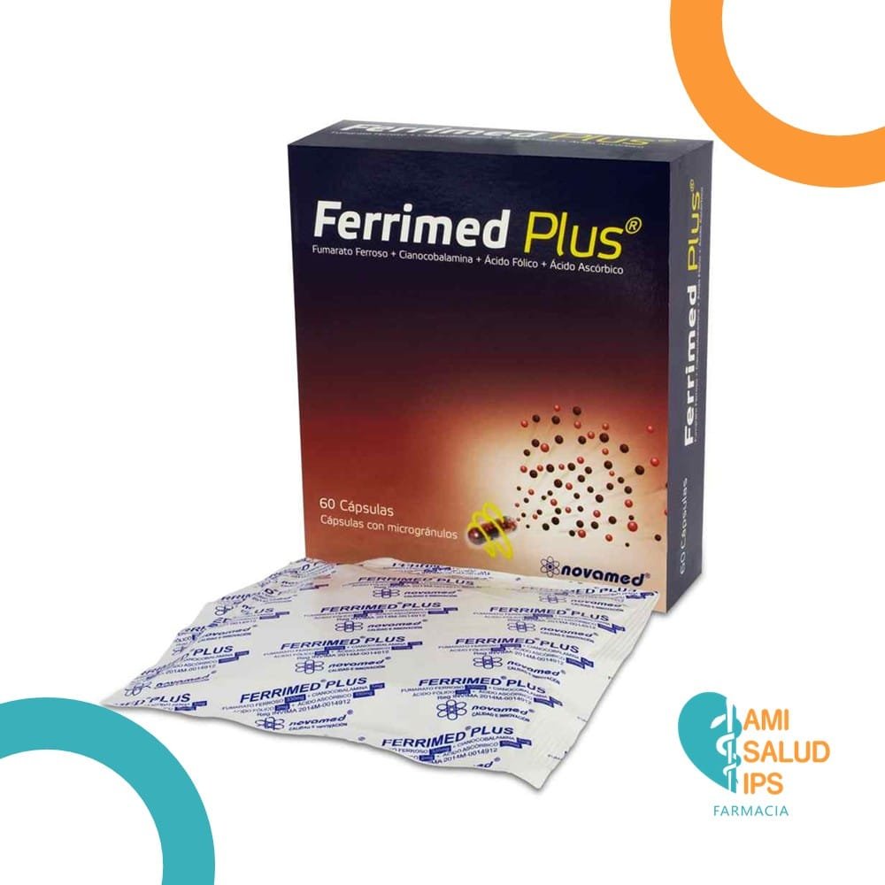 FERRIMED PLUS ACIDO ASCORBICO 100MG, ACIDO FOLICO 2MG, CIANOCOBALAMINA 1MG, FURAMATO FERROSO 330MG CAJA * 60 CAPSULAS NOVAMED